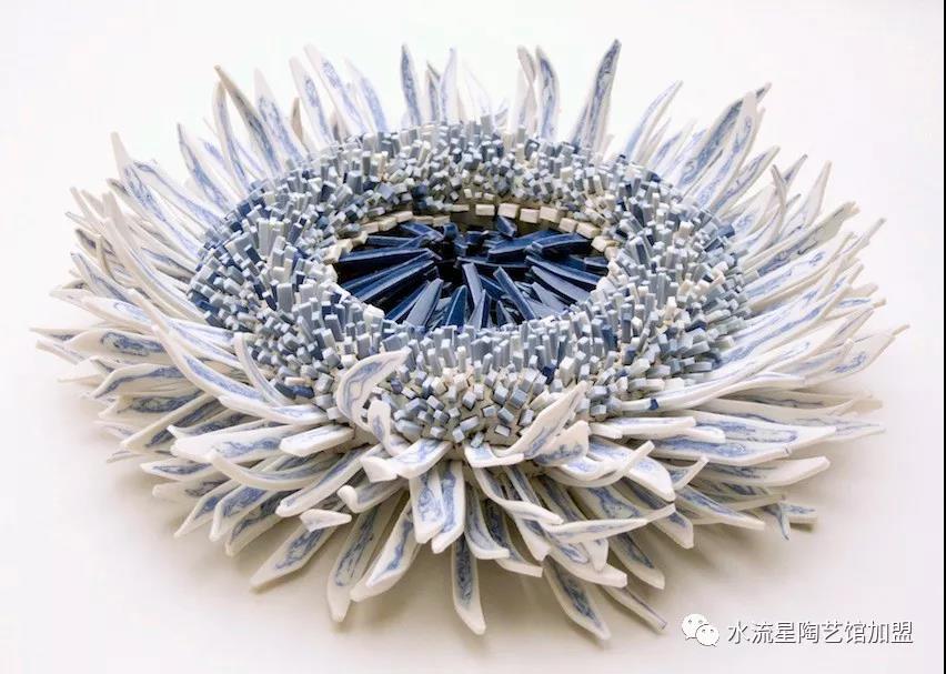 以色列藝術家Zemer Peled使用成千上萬的陶瓷碎片,構(gòu)造了這個像美麗的盛開的花朵般的雕塑。復雜的作品結(jié)合了各種各樣的顏色和圖案,明顯的是用于日本傳統(tǒng)陶器的艷藍色。