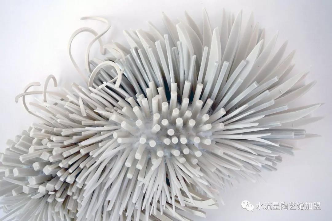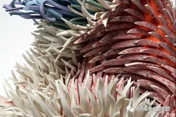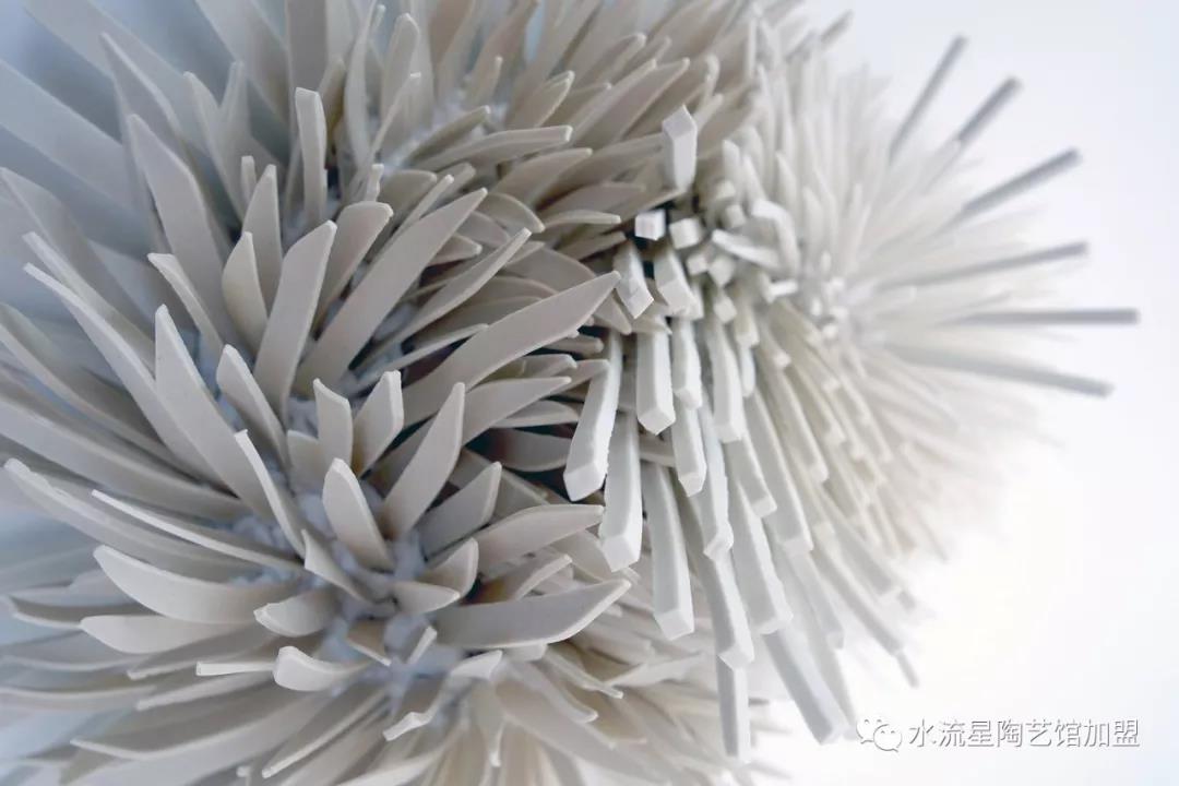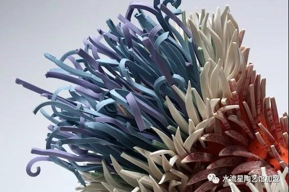 Peled的陶瓷突出花的優(yōu)雅和令人難以置信的有機結(jié)構(gòu)。但與此同時,單獨的碎片有鋒利尖銳的邊緣,與柔和彩色的花朵形成了鮮明的對比。